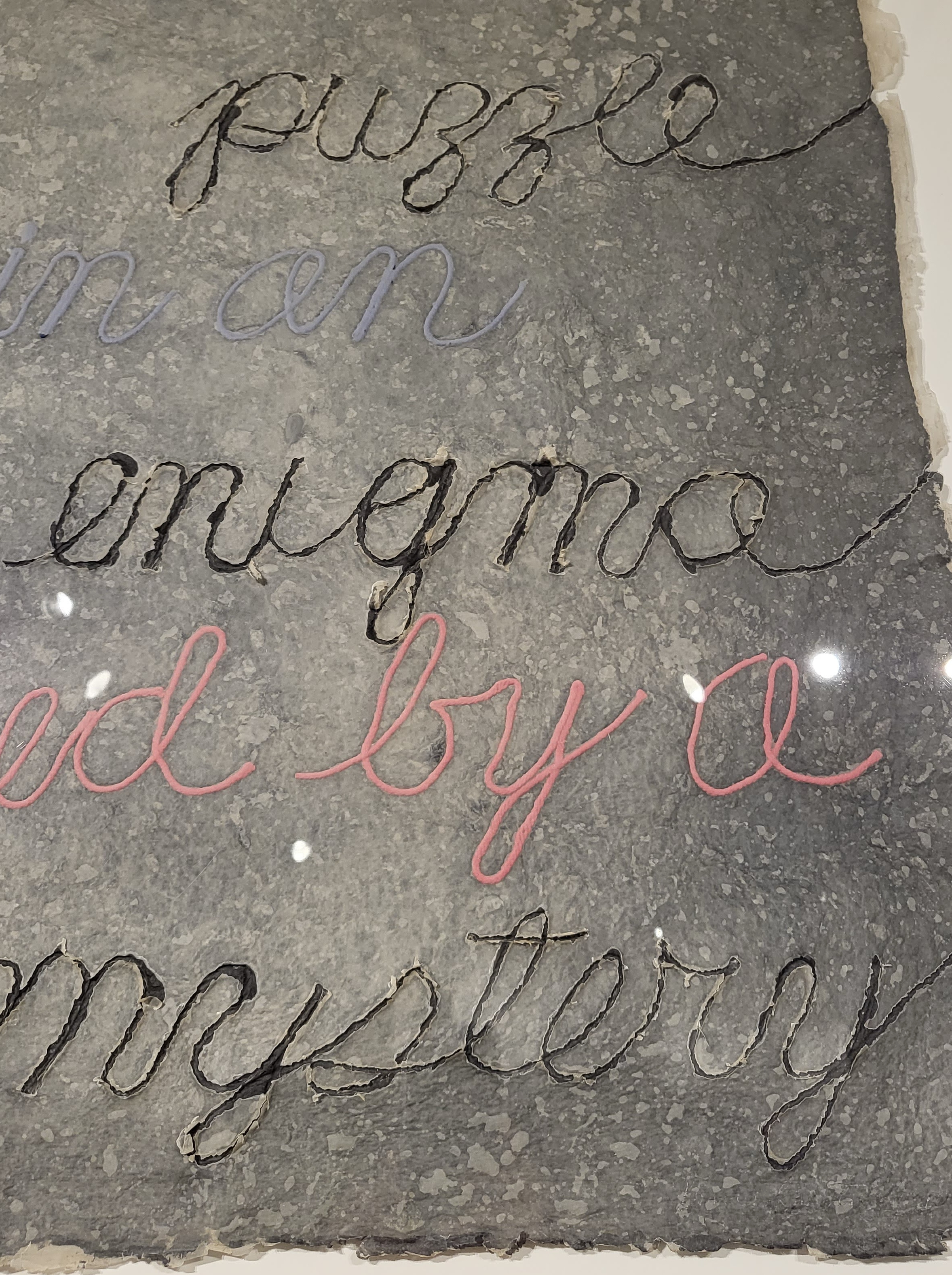 (OK, that’s not all I said to him. I was balancing the frustration of being interrupted by a man as I looked and thought. Did I appear to be doing nothing? As a woman, did I seem to be waiting for a man? Someone to ask me to help him out of his confusion? But then I realized this is something I’m actually good at, something I happen to enjoy: talking with people about art in galleries. And although my thoughts were nowhere near shaped yet, I stepped out of my head and entered into a conversation).