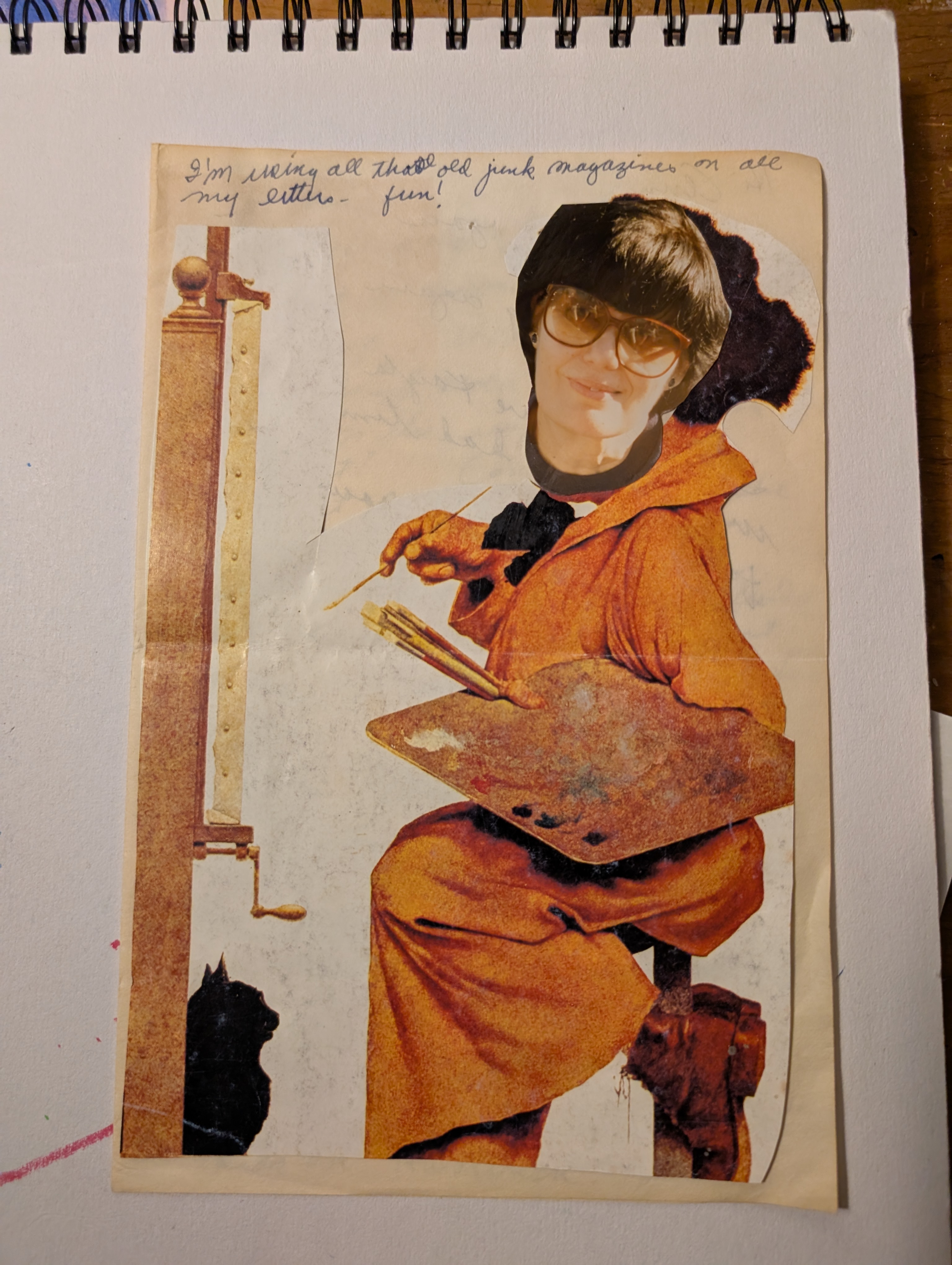 In sorting through the chaos of her things following her years of physical decline, I was able to see her artistic identity resurface. It took shape within the contents of so many boxes and notebooks: recipes clipped from magazines or written on cards (almond cake, apple galette, cheddar cheese biscuits, dark chocolate bundt cake, tequila-soaked watermelon wedges); newspaper articles about museum exhibits, pictures of sun-soaked locales, postcards from family, cards from friends, children and grandchildren; small pictures of colorful things–a Dali painting, lime popsicles, someone else’s tugboat painting, a photo of mountains in Nepal. Some pages list strange-sounding medications, with dates and check marks of what was taken and when: Eloquis, Bistolic, Metformin. Other pages have random sentences, written multiple times, almost like mantras, “Tian Taru Studio in the village of Alas Sidem on the island of Bali, the tree that grows between heaven and earth.” Some people call these scrapbooks, but I call them my mom’s sketchbooks. They are collages of her loves, her desires, and her changing reality.