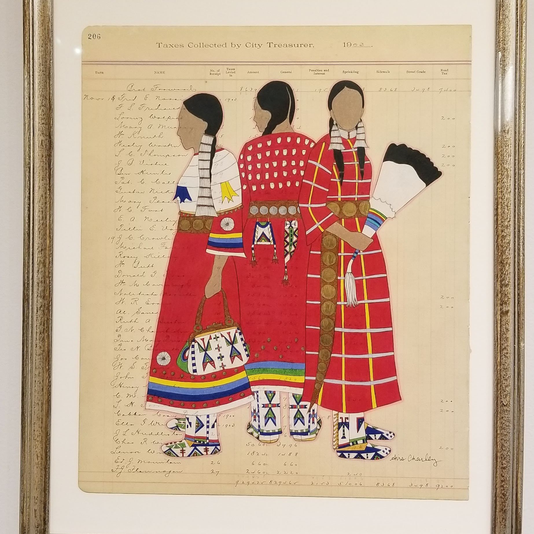 The choices seem to be peeking into the windows of closed galleries, searching #virtualartexhibition, or catching up on my reading. One example that I haven’t been able to share yet (due to the unexpected relocation) is Stolen Sisters, which was on view in February at the Crossman Gallery at the UW-Whitewater here in Wisconsin. Although I wrote about it in the last issue of the New Art Examiner, the topic of the exhibition remains heartbreakingly relevant. Having another opportunity to bring attention to it and the artists included is an easy decision. Checking out their work is especially important now, as with galleries closed and fairs postponed, artists everywhere need support.